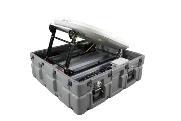 The latest generation of Kymeta terminals such as the Hawk U8 are a great alternative where space is at a premium, or where a short deployment time is paramount. An additional benefit of the Kymeta is that it its availability in a shippable, portable hard case, which can be mounted either flat, or elevated to 25 degrees within the case, making it ideal for vehicles and mobile platforms.